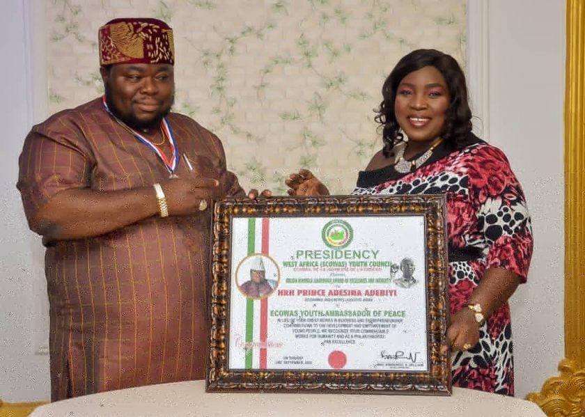 The business magnate was praised for his strides and accomplishments, and complimented that he merited the award for ECOWAS Youth Ambassador of Peace. Adebiyi’s philanthropy and charity gestures, his support for social creativity and innovations, his passion for youth empowerment and development, did not go unnoticed. These were the things that caught the attention of ECOWAS.