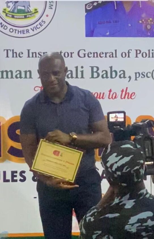 The presentation of the award was done by the Force Secretary, AIG Hafiz Inuwa mni who represented the Inspector General of Police, IGP Usman Alkali Baba NPM, psc (+), fdc at the opening ceremony of a 2-day seminar held to sensitize participants and the public ahead of the 1st IGP Triathlon Invitational Championship scheduled for 4th December in Abuja was attended by the Force Secretary,