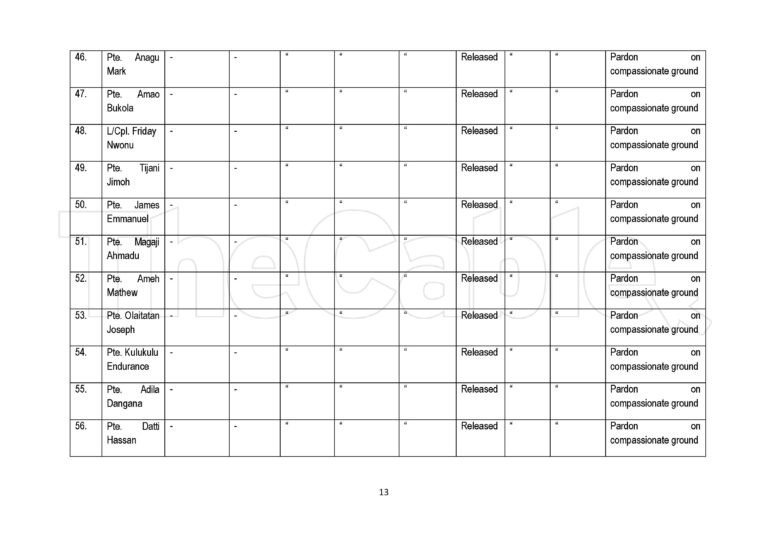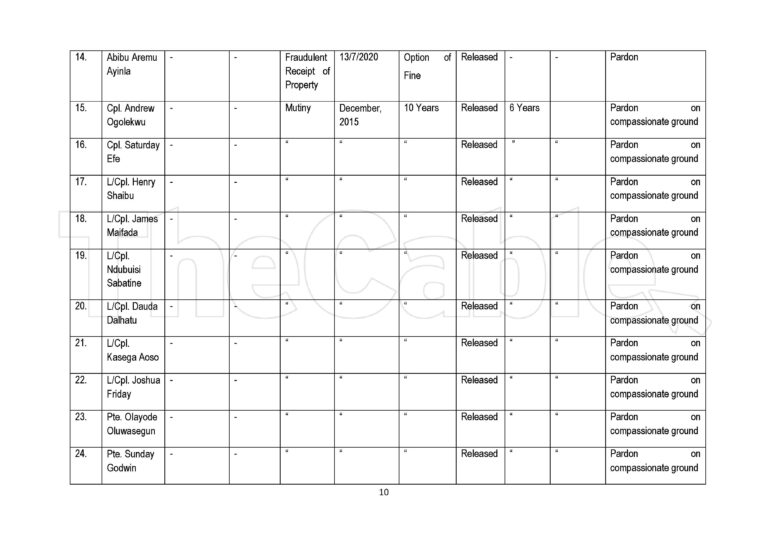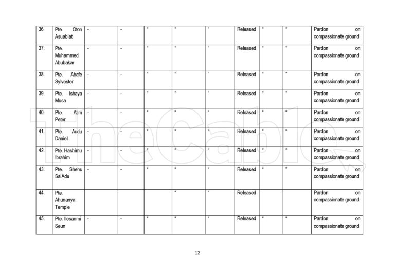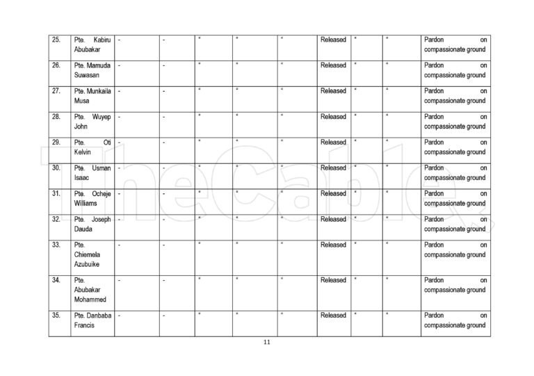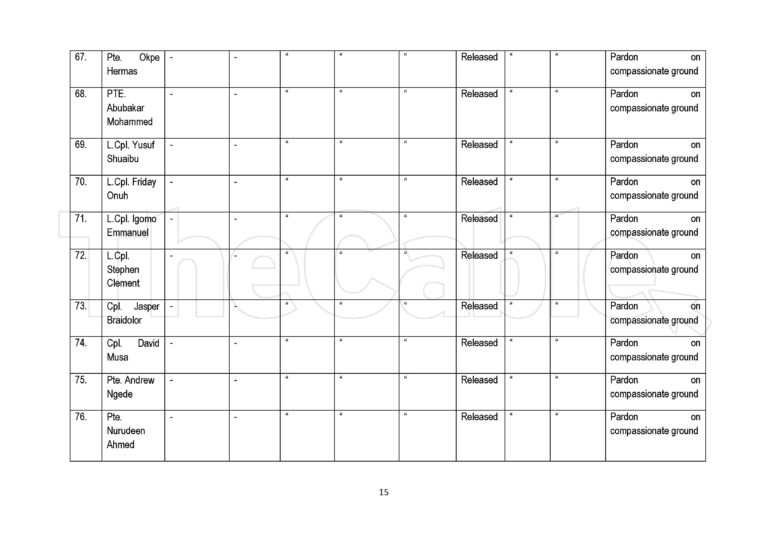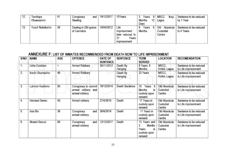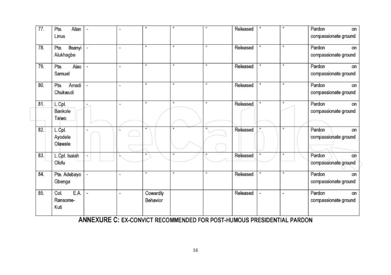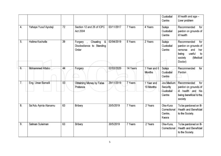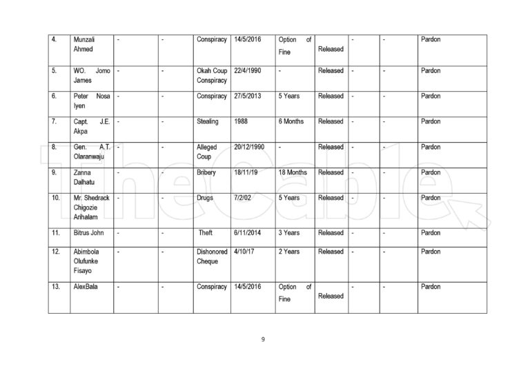A list of the 162 convicts recommended for pardon by the Presidential Advisory Committee on Prerogative Of Mercy has emerged.