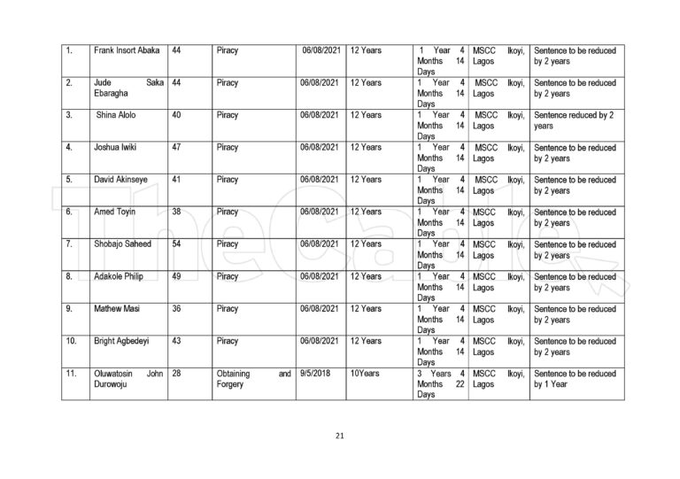 On the list obtained by TheCable are scores of people convicted for fraud, money laundering, drug trafficking, forgery and stealing.