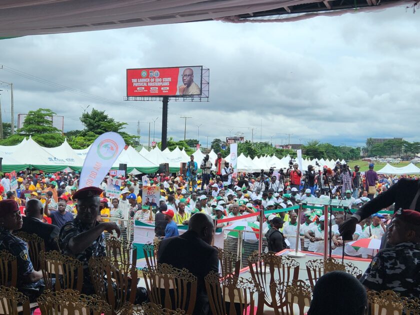 It’s a carnival-like atmosphere as supporters and members of the Peoples Democratic Party (PDP) in Edo State are in jubilant mood at the on going grand finale rally of the party currently holding at the Garrick Memorial Grammar School ground in Benin City, the State capital.