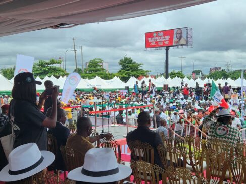 It’s a carnival-like atmosphere as supporters and members of the Peoples Democratic Party (PDP) in Edo State are in jubilant mood at the on going grand finale rally of the party currently holding at the Garrick Memorial Grammar School ground in Benin City, the State capital.