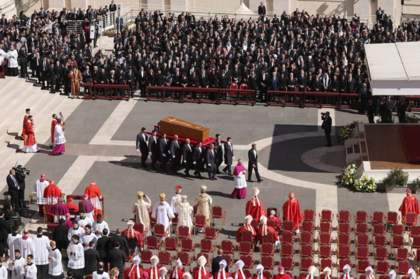 The late Pope, who so tirelessly advocated for peace, was driven past the ancient Roman Forum and the Colosseum, where his beautiful meditations for the Good Friday Way of the Cross had been read aloud just one week before, denouncing the economy of indifference and calling for an economy of peace.