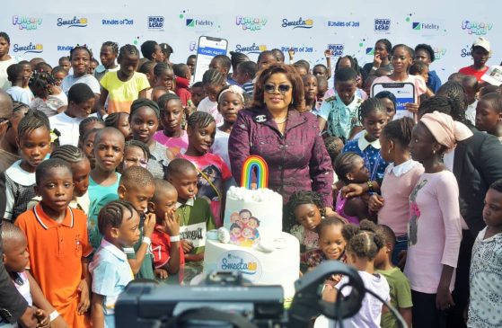 Managing Director/Chief Executive Officer, Fidelity Bank Plc, Dr. Nneka Onyeali-Ikpe (Middle); flanked by Fidelity Bank SWEETA kids at the Fidelity Fantasyland celebration in commemoration of the 2025 Children’s Day at the Fidelity Grounds, Oniru, Lagos yesterday.