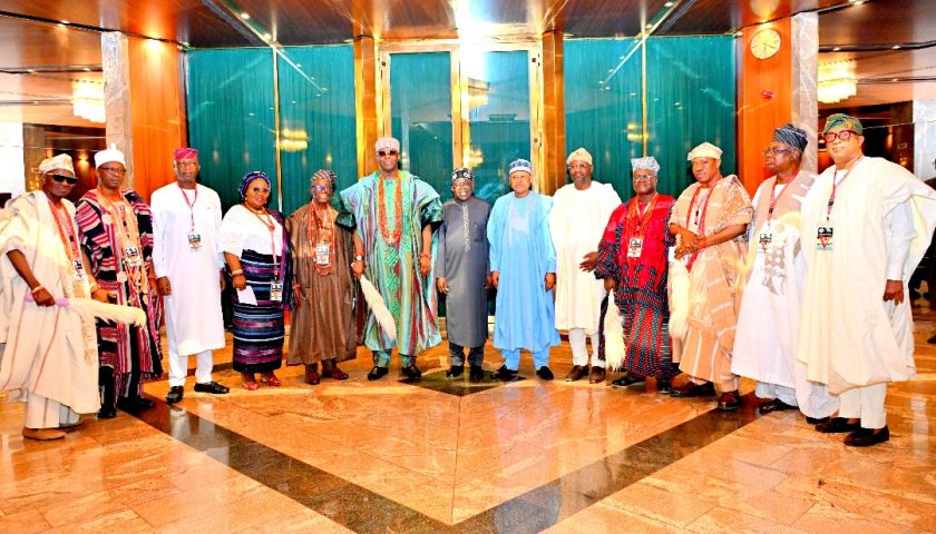 He stated this at the State House when he received His Imperial Majesty, Oba Ghandi Afolabi Oladunni Olaoye, Orumogege III, the Soun of Ogbomosoland, in audience with some other royal fathers.