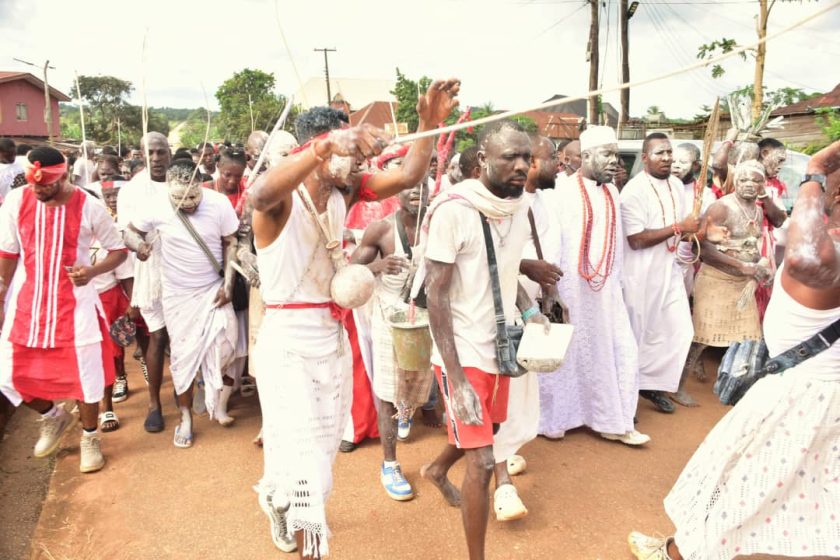 The festival showcases culture at its peak, as indigens soak themselves on mud and white chalk dancing with the Onishe Ezemu all around the community.