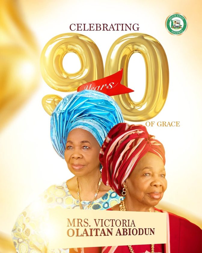 Last Wednesday, the ancient town of Iperu-Remo in Ikenne Local Government Area (LGA) of Remo Federal Constituency in Ogun State, paused for hours, soaked in glitz and glamour, as Governor Dapo Abiodun of Ogun State, his siblings and the entire Abiodun family hosted the 90th birthday celebration of their jewel of a mother, Chief Mrs. Victoria Olaitan Abiodun, in grand style.