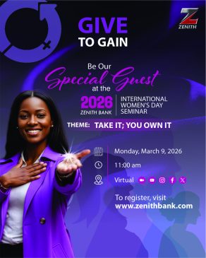Speaking ahead of the Seminar, the Group Managing Director/CEO, Dame Dr. Adaora Umeoji, OON, who will deliver the welcome address, said “The International Women’s Day is a reminder that progress requires intentionality. ‘Give to Gain’ speaks to the responsibility institutions have to create real opportunities, while our theme ‘Take It, You Own It’ challenges women to step forward boldly and lead. At Zenith Bank, we are deliberate about building environments where women are supported to grow, thrive, and shape outcomes, not only within our institution but across the communities and industries we serve.”